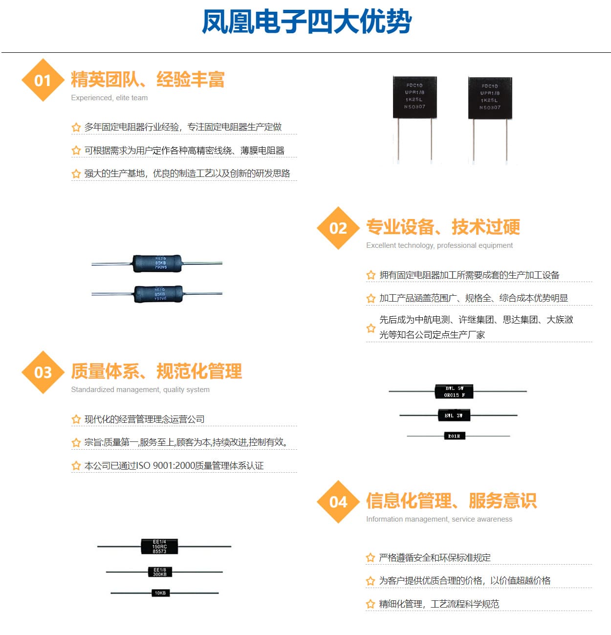 - 蚌埠鳳凰電子有限責(zé)任公司是生產(chǎn)各類高精密電阻器的專業(yè)廠家,公司主要生產(chǎn)符合美國(guó)軍標(biāo)EE、RE、RN型高精密金屬膜電阻,UPR、UPRN高精密電阻網(wǎng)絡(luò)及功率型低電感BWL、BVR系列精密電阻器,公司還生產(chǎn)RX70、RX71系列精密線繞電阻器及CMF型精密片式電阻器和車用電阻器RXGM-1/RXGM-2系列,動(dòng)車用磁場(chǎng)削弱電阻器、充電電阻器、機(jī)車啟動(dòng)電阻器等幾十···